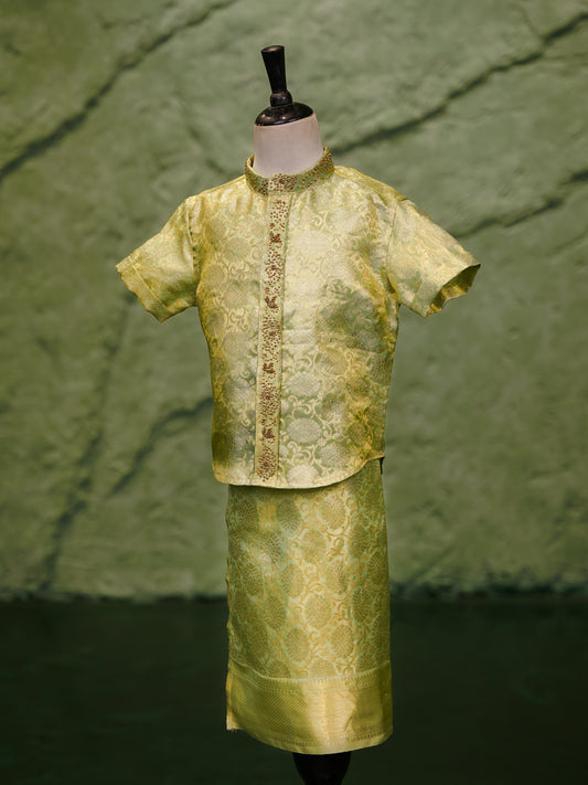 Pastel Green Kanchipuram Silk Shirt & Dhoti Set