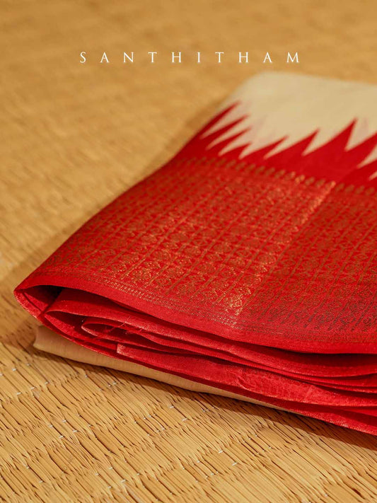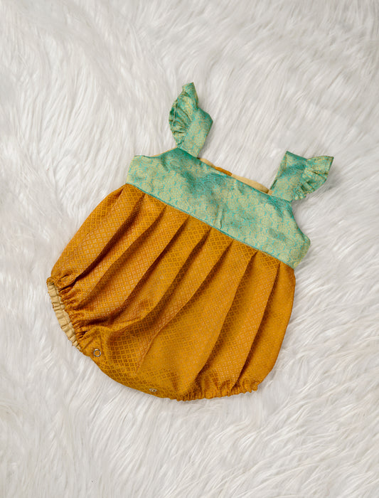 Peach and Turquoise Green Floral Print Semi Silk Saree