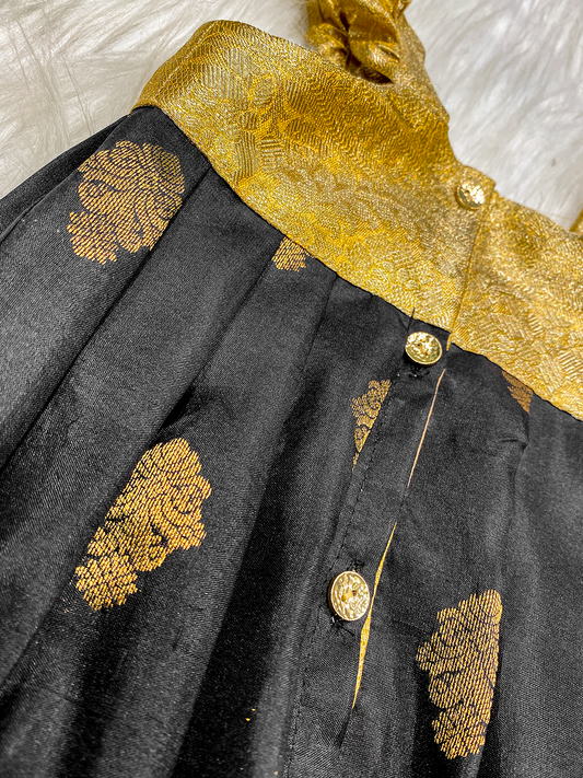 Classic Black & Gold Silk Newborn Girl Romper Set