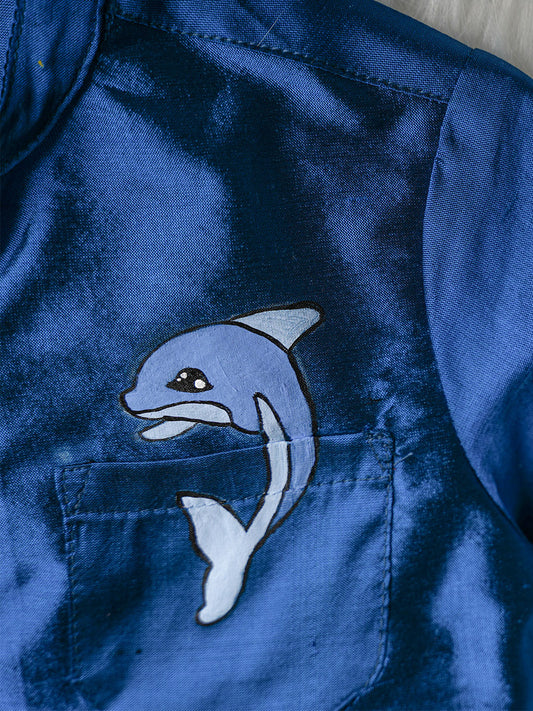 Hand-Painted Whale Cartoon Kanchipuram Silk Baby boy shirt