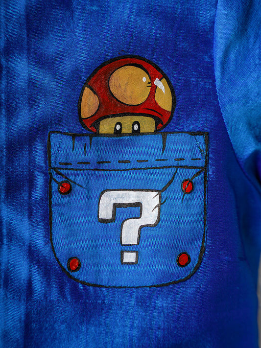Hand-Painted Mushroom Cartoon Kanchipuram Silk Baby boy shirt