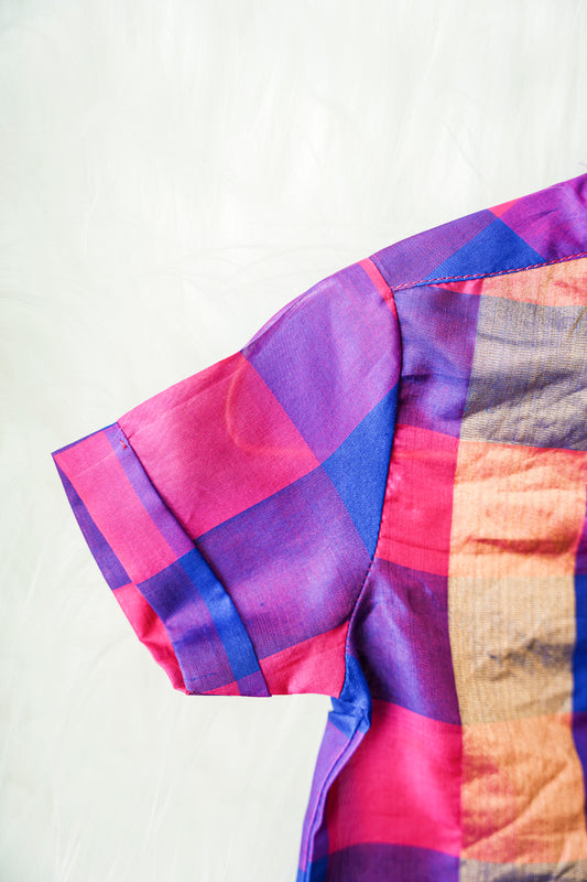 Blue and Pink checked Kanchipuram Silk Baby boy shirt