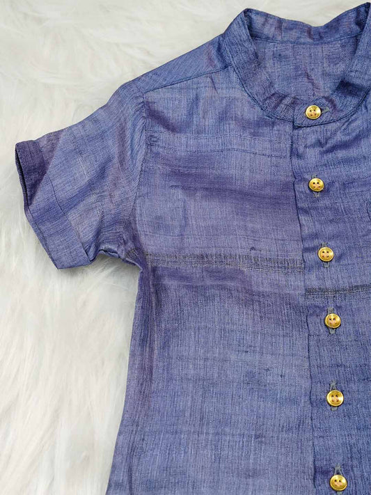 Violet Blue Kanchipuram Silk Baby boy shirt