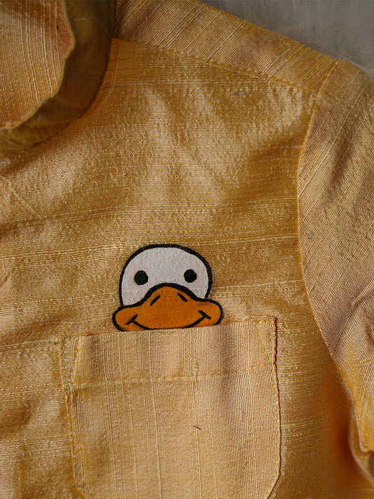 Hand-Painted Duck Cartoon Kanchipuram Silk Baby boy shirt
