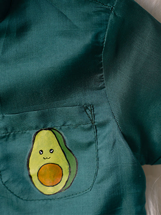 Hand-Painted Avacodo Cartoon Kanchipuram Silk Baby boy shirt