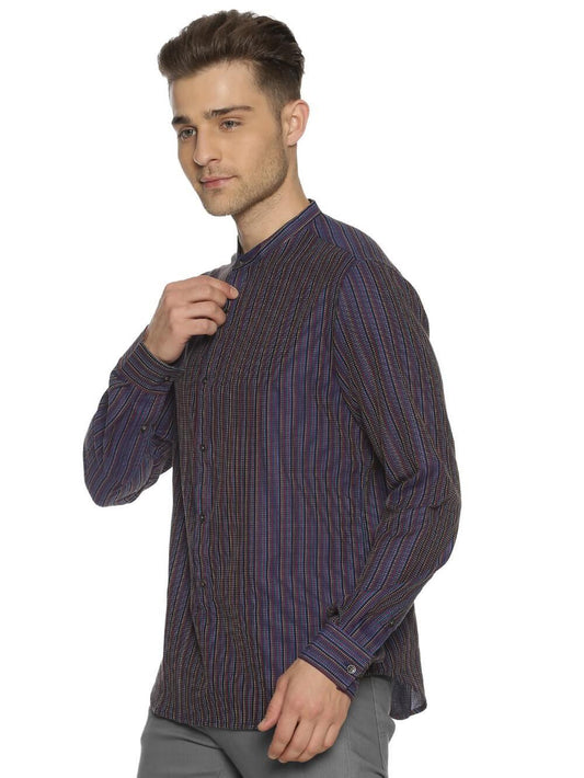 Jacquard Woven Indigo Men Slim Fit Full sleeves Shirt