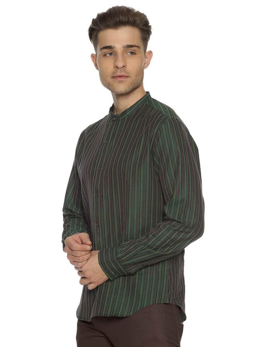 Jacquard Woven Sacramento Green Men Slim Fit Full sleeves Shirt