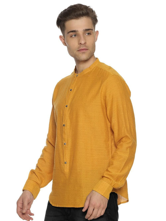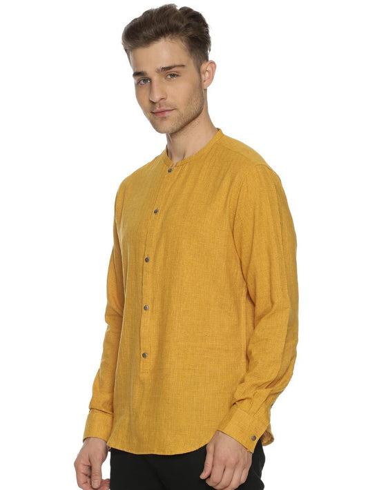 Khadi Mustard Yellow Men Slim Fit Shirt