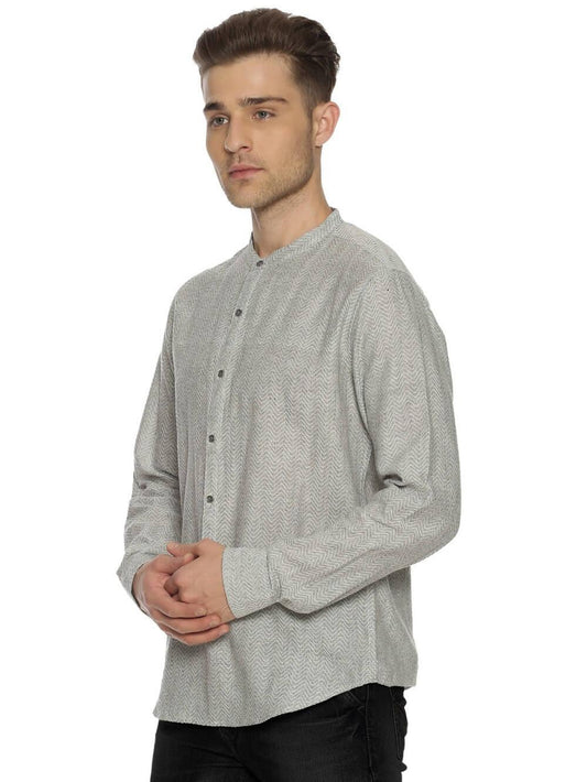 Jacquard Woven Gray Men Slim Fit Full sleeves Shirt
