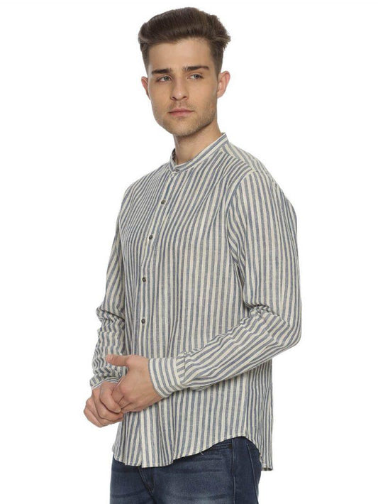 Handloom Woven Blue Stripes Men Slim Fit Shirt