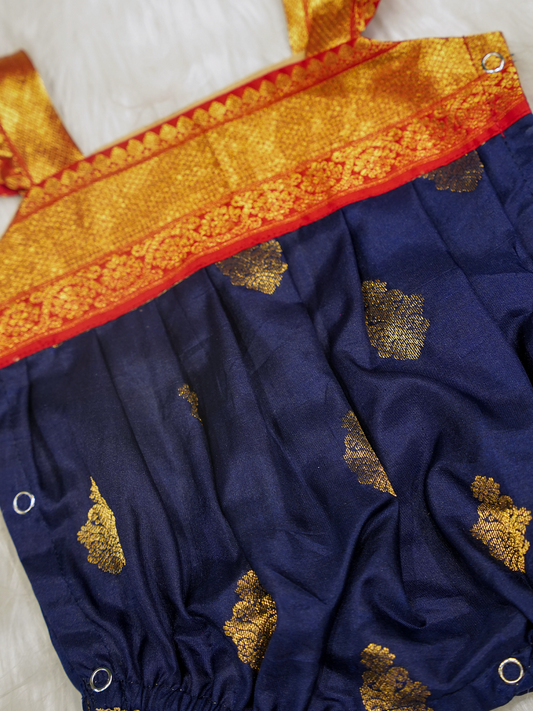 Navy Blue & Gold Kanchipuram Silk Romper Set