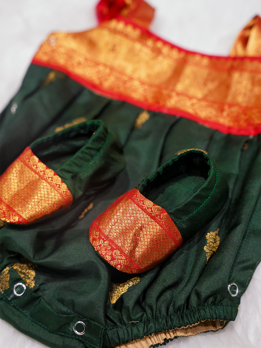 Bottle Green & Gold Kanchipuram Silk Romper Set