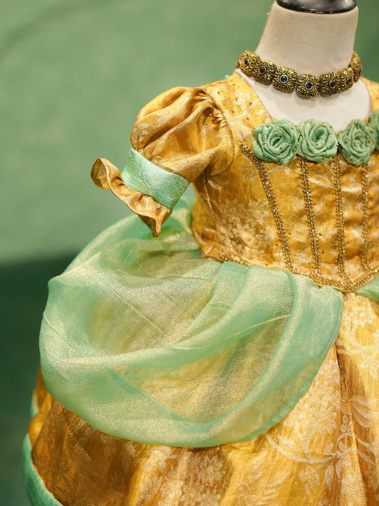 Cinderella-Inspired Gold & Mint Party Gown for Girls