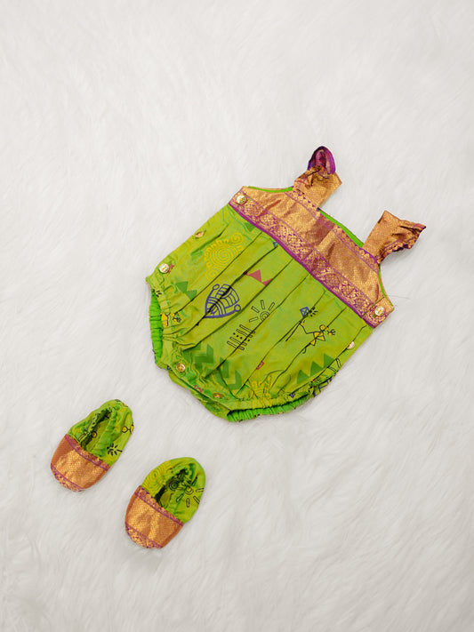 Green Tribal Print Silk Romper Set