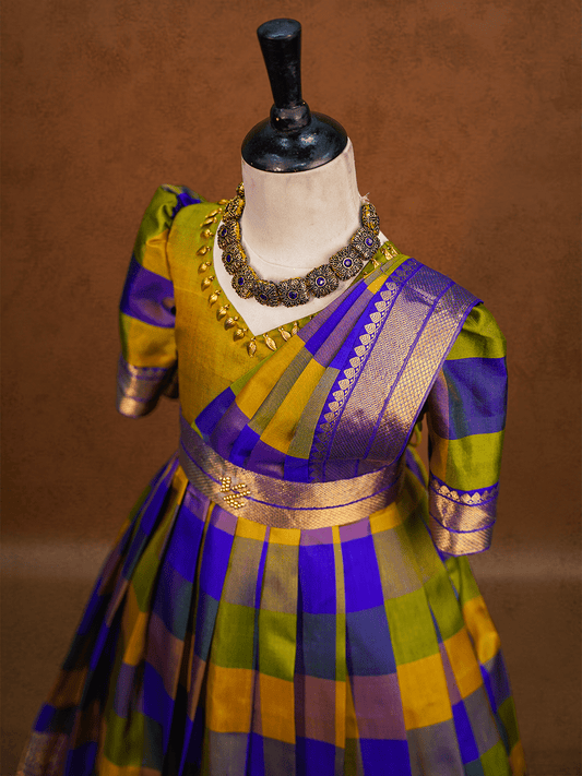 Blue and Pink checked Kanchipuram Silk Baby boy shirt