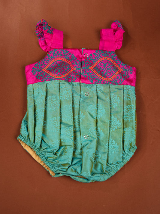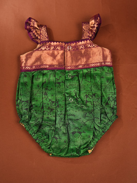 Peacock Grove – Deep Green Kanchipuram Silk Romper