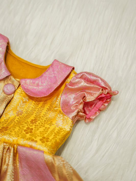 Gold & Pink Baby Silk Frock — Pure Kanchipuram Silk (0–1 Year)
