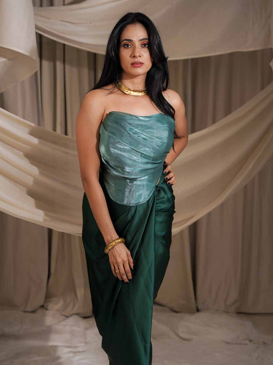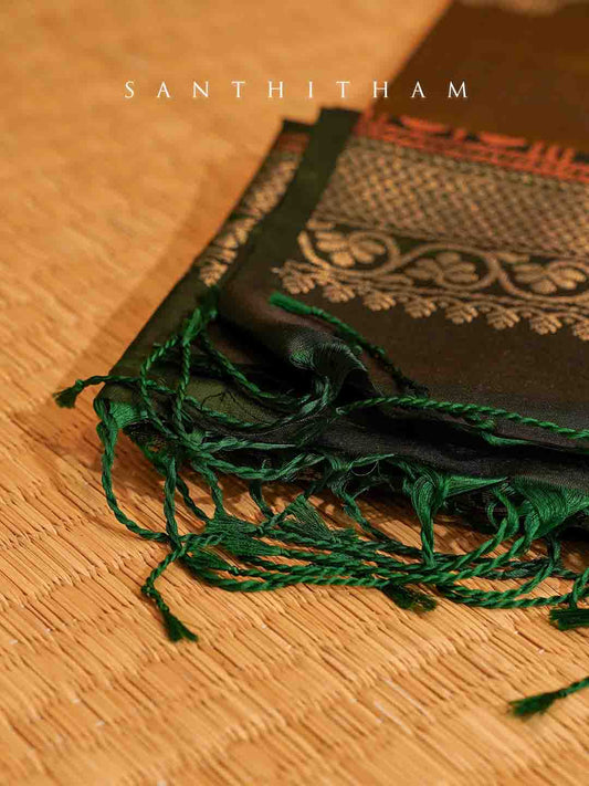 Brown and Dark Green Silk Saree