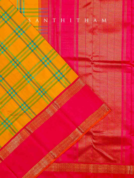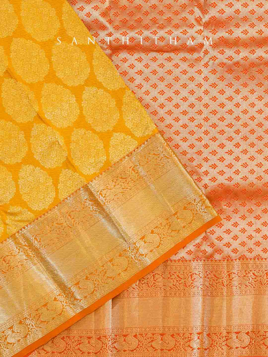 Pineapple Yellow and Tangerine Silk Saree