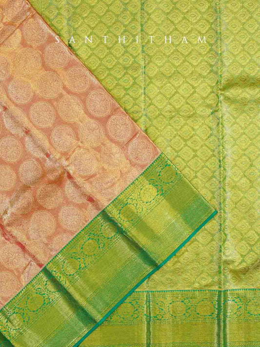 Lime Green and Pumpkin Orange Silk Saree