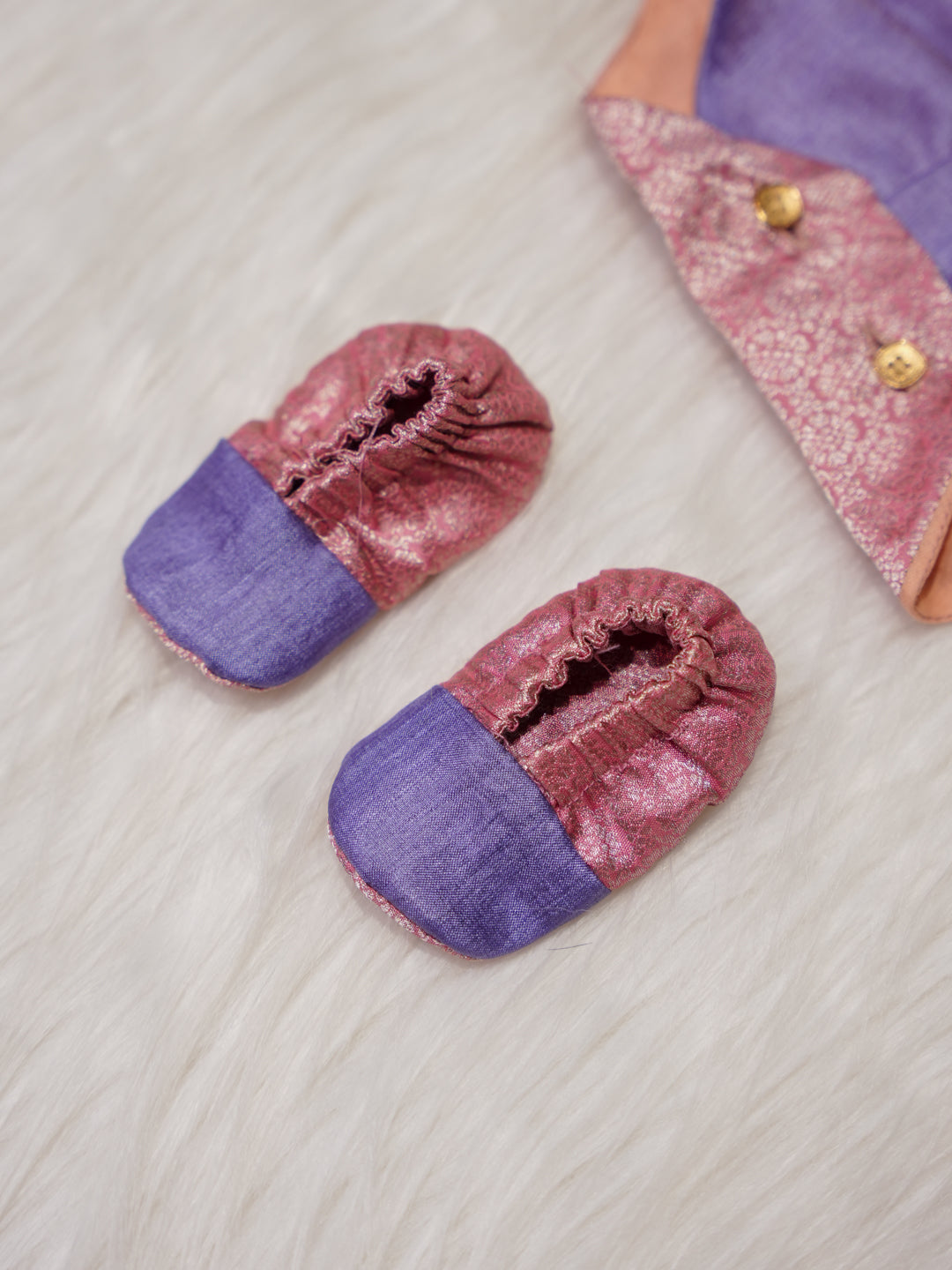 • Includes matching Pure Kanchipuram Silk booties