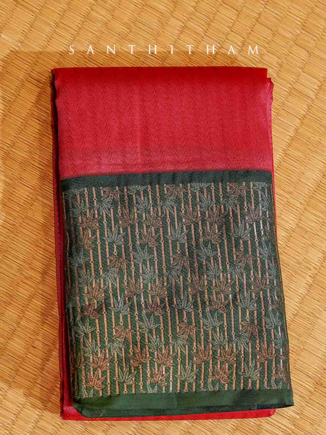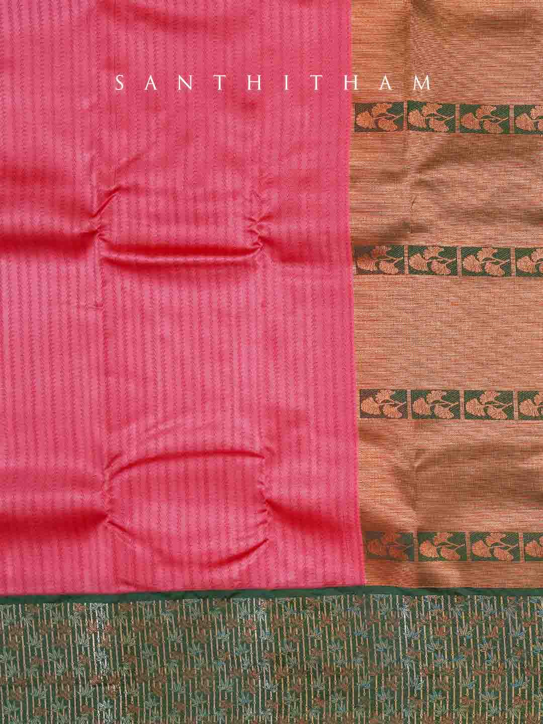 Pinkish Red and Forest Green Semi Silk Saree