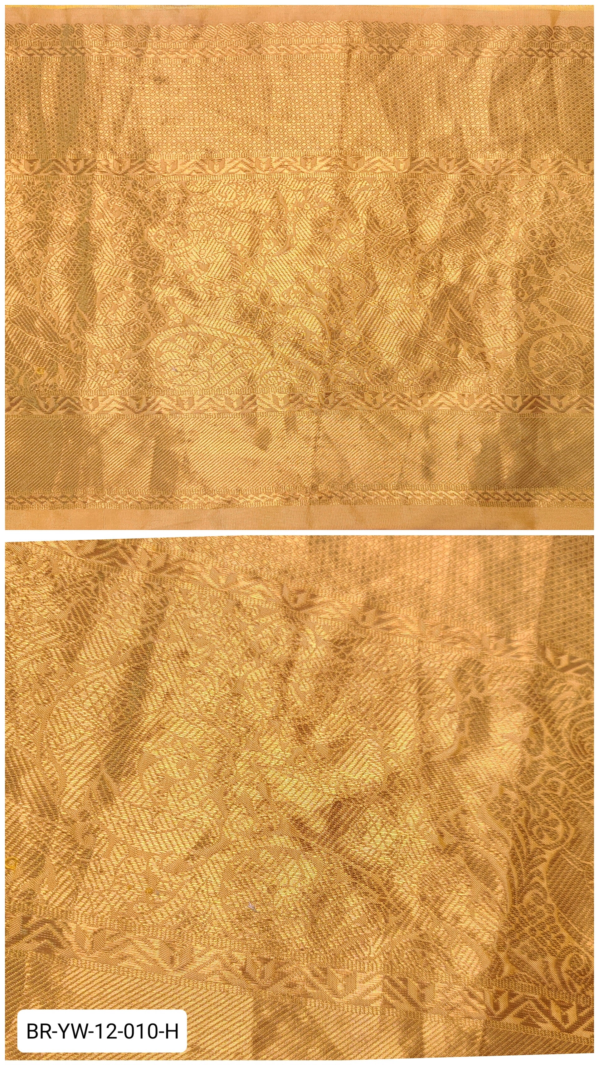 11 Inch Pure Kanchipuram Silk Zari Border – Yellow with Gold Zari Peacock & Floral Weave