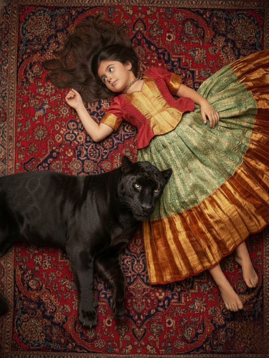 Every twirl in this pattu pavadai brings alive the beauty of tradition, comfort, and craftsmanship — a heritage outfit your little princess will treasure.